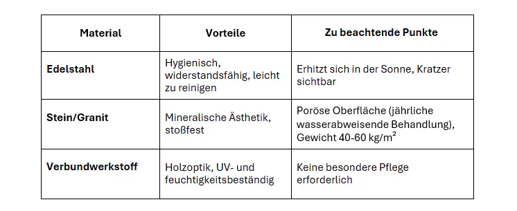 Eine funktionale Outdoorküche integriert drei wesentliche Bereiche: Kochen, Vorbereiten und Spülen. Die Gesamtfläche hängt von der Gästezahl und dem eventuellen Hinzufügen eines Essbereichs ab.