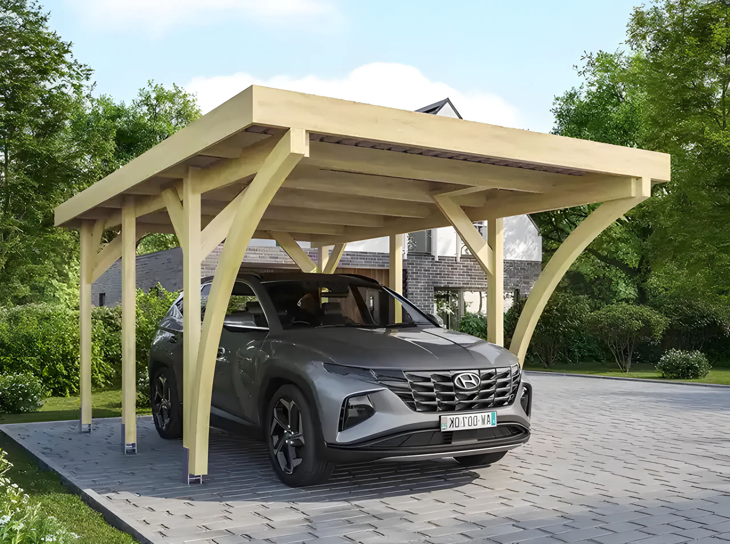 Angesichts der Allgegenwart von Beton und Metall feiert Holz in der Außengestaltung ein Comeback. Im Jahr 2026 entsprechen Holz-Carports der Nachfrage nach natürlichen Materialien. Dieses Material bringt natürliche Farbtöne mit sich, die mit dem Garten harmonieren.