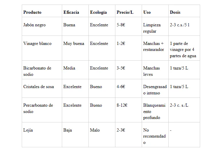 La elección del producto depende del tipo de suciedad y de la intensidad de la limpieza necesaria. A continuación, se presenta una comparativa de las soluciones más comunes.